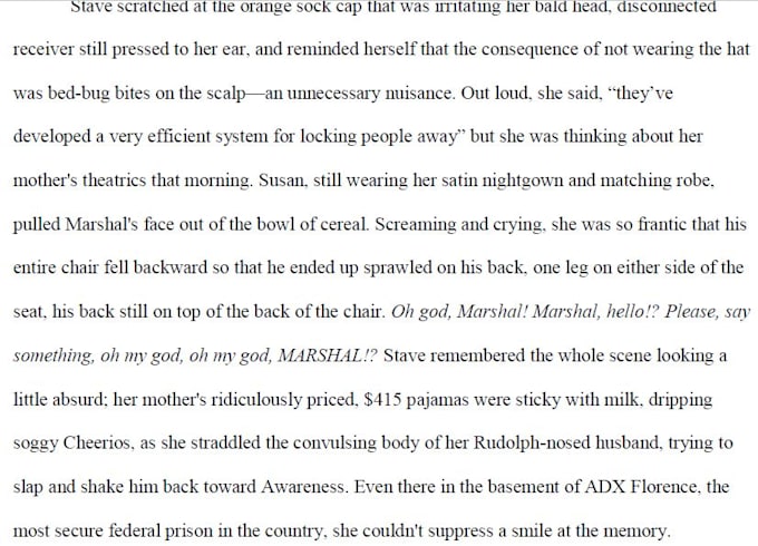 bg1301:Bri went above and beyond the criteria I had originally asked for. She set the scene very well and provided context to the plot. The imagery was fantastic and very vivid. Working with Bri exceeded my expectations.