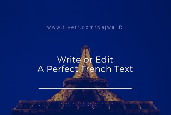 I am reposting this gig, since it had been denied on a misapprehension...As a French Native speaker, living in France, I'm offering to write or edit a perfect French text for you. I guarantee to offer you a text free of mistakes and 100% original.